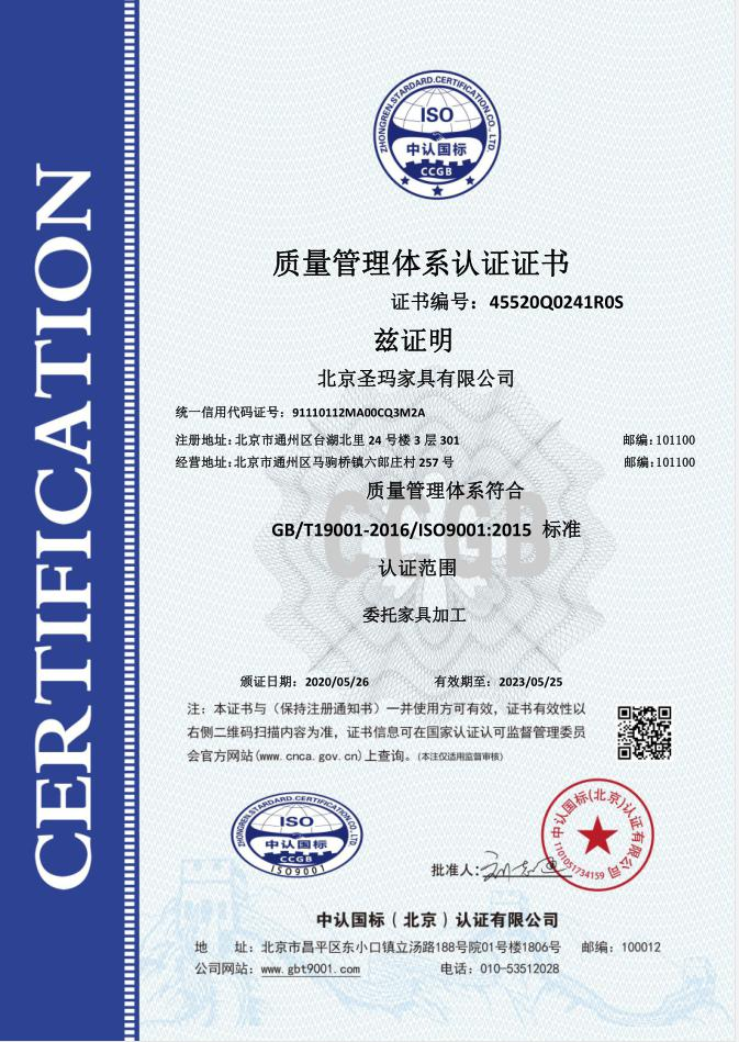 北京圣瑪家具有限公司是以設(shè)計研發(fā)、生產(chǎn)、銷售、服務(wù)為一體的專業(yè)化辦公家具制 造企業(yè);主要經(jīng)營辦公家具、校園家具、實驗室家具、酒店套房、全屋定制類等家具。 公司成立于 2017 年,生產(chǎn)基地位于天津市蘆臺經(jīng)濟開發(fā)區(qū)華澳盛世家具有限公司院 內(nèi),占地面積約 10000 平米,擁有員工 100 人左右,其中高級技術(shù)人員達 15%以上。 公司采用了南興、先達系列等先進生產(chǎn)設(shè)備,建立專業(yè)流水線,具備先進的生產(chǎn)及加 工能力。公司設(shè)有專業(yè)的產(chǎn)品設(shè)計部、運營部、質(zhì)檢部等,提供專業(yè)的 CAD 平面圖、立面 圖級效果設(shè)計圖紙。 使用優(yōu)質(zhì)的進口原材料及配件;嚴把進貨渠道,所用材料符合國家環(huán)保標準要求???式上依據(jù)人體工程學(xué)原理,追求多樣化的設(shè)計風格。按照 “ISO900/ISO14001 族標準” 的 要求,嚴格控制每一個環(huán)節(jié)。 并本著“以質(zhì)量求發(fā)展,向管理要效益,顧客滿意為焦點,持續(xù)改進,共筑偉業(yè)”的 宗旨方